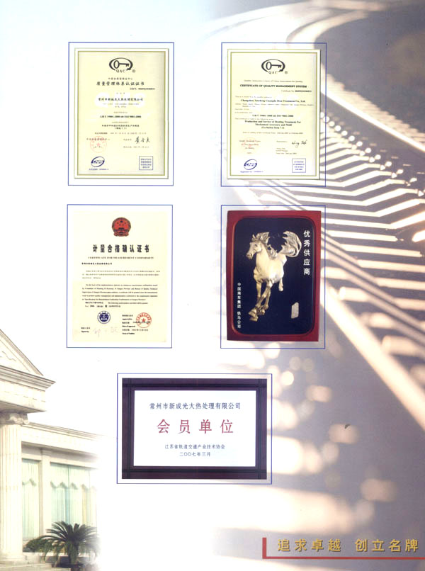 公司現(xiàn)有職工258名,具有高、中級(jí)職稱的管理人員20多名,經(jīng)過(guò)培訓(xùn)、考核合格的生產(chǎn)工人200多名。設(shè)生產(chǎn)安全部,技術(shù)質(zhì)量部,設(shè)備動(dòng)力部,經(jīng)理辦公室和生產(chǎn)車間、生產(chǎn)班組等管理的生產(chǎn)部門(mén)。本公司是我市熱處理行業(yè)第一個(gè)通過(guò)國(guó)家質(zhì)量體系認(rèn)證的企業(yè),同時(shí)也是我市軌道交通產(chǎn)業(yè)聯(lián)合會(huì)、省科技廳市科技局定點(diǎn)扶持的骨干企業(yè),是鐵道部戚墅堰機(jī)車車輛工藝研究所、航空航天部蘇州長(zhǎng)風(fēng)機(jī)械總廠定點(diǎn)協(xié)作單位,是國(guó)外阿爾斯通、GE公司、三菱重工等多家公司的合作伙伴。