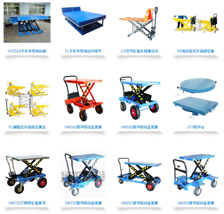 目前,我公司主要產(chǎn)品有液壓升降平臺(tái)、花木搬運(yùn)設(shè)備、懸臂送絲機(jī),同時(shí)我們還生產(chǎn)液壓升降臺(tái)相關(guān)附件等。公司產(chǎn)品具有設(shè)計(jì)新穎、結(jié)構(gòu)合理、升降平穩(wěn)、簡(jiǎn)單操作、維修方便等優(yōu)點(diǎn),適用于園林、倉(cāng)庫(kù)、車站、工廠生產(chǎn)線等需要進(jìn)行物料搬運(yùn)及裝卸的場(chǎng)所,是省時(shí)省力,安全高效的搬運(yùn)設(shè)施。