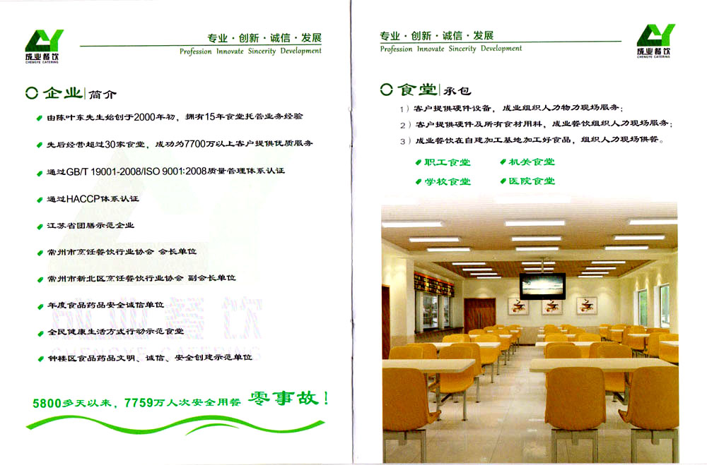常州市成業(yè)餐飲管理有限公司位于常州市鐘樓區(qū)星港58號,是一家專業(yè)從事中小學(xué)師生營養(yǎng)餐制售及配送一體化的企業(yè),自創(chuàng)立以來,始終堅持“專業(yè)•創(chuàng)新•誠信•發(fā)展”的經(jīng)營理念,牢固樹立“消費(fèi)者利益至上”的行業(yè)價值觀,以“社會利益和經(jīng)濟(jì)利益共同實(shí)現(xiàn)”為發(fā)展目標(biāo),深入推進(jìn)各項創(chuàng)建工作,積極響應(yīng),工商協(xié)同、培育品牌、信息共享、完善制度、增強(qiáng)能力,從而更好地服務(wù)于在校就餐師生。 公司董事長陳葉東先生經(jīng)過多年的自主經(jīng)營歷程,積累經(jīng)驗,勇于創(chuàng)新,積極進(jìn)取,于2009年3月籌建創(chuàng)立常州市成業(yè)餐飲管理有限公司,注冊資金518萬元整,發(fā)展至今,已經(jīng)營管理30多家中小學(xué)、企業(yè)食堂,每天為45000多人次提供優(yōu)質(zhì)放心午餐,擁有良好的經(jīng)營信譽(yù)和口碑。 為了更好的適應(yīng)常州學(xué)生營養(yǎng)餐供給模式,于2015年2月投建2000平方米中心廚房,同年8月正式投入使用,以先進(jìn)的恒溫配送模式滿足校內(nèi)無食堂的學(xué)校供餐需求。2018年5月,鑒于公司發(fā)展需求,重新投建350平方米團(tuán)餐加工及配送中心,8月正式投入生產(chǎn),力求成為常州市一流的學(xué)生營養(yǎng)餐配送企業(yè)。 基于常州公司的穩(wěn)步發(fā)展,成業(yè)并沒有滿足現(xiàn)狀,停下腳步。2017年7月以980萬注冊創(chuàng)建鹽城成業(yè)餐飲管理有限公司,為鹽城阜寧教育體系各單位提供食堂管理及師生團(tuán)膳配送服務(wù)。至2019年3月,日供餐人次已達(dá)21000多人次。 2018年7月,成業(yè)餐飲在鹽城地區(qū)相繼啟動濱海和響水兩縣的集體用餐配送及食品原料大宗采購項目,當(dāng)?shù)叵嚓P(guān)政府部門對公司的發(fā)展規(guī)劃及實(shí)施進(jìn)度給予了高度評價和支持。