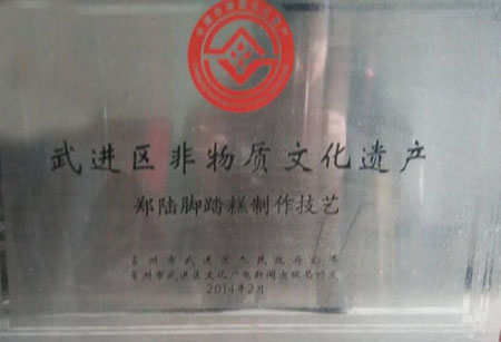 常州鄭陸何金興腳踏糕制作坊從事腳踏糕制作工藝200多年,五代傳承,制作面積300平方米左右,腳踏糕是用黏性大的米或米粉蒸成的糕,是中國農歷年的應時食品。春節(jié),我國很多地區(qū)都有講究吃年糕。年糕有紅、黃、白三色,象征金銀,年糕又稱“年年糕”,與“年年高”諧音,寓意著人們的工作和生活一年比一年提高。所以前人有詩稱年糕:“年糕寓意稍云深,白色如銀黃色如金。年歲盼高時時利,虔誠默祝望財臨。”另有浙江省寧波市江北區(qū)慈城鎮(zhèn)的水磨年糕也是特別有名。