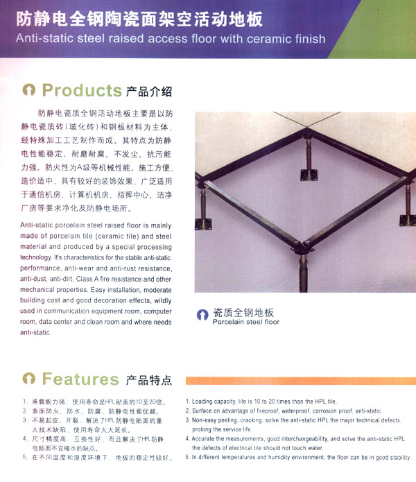常州天馳活動(dòng)地板有限公司始創(chuàng)于2010年,原身是常州市武進(jìn)區(qū)橫林天馳機(jī)房地板廠,地處橫林工業(yè)園區(qū),交通便捷。 公司主要生產(chǎn)和銷售各種機(jī)房地板,自創(chuàng)立以來,以品質(zhì)第一,信譽(yù)第一,服務(wù)第一的理念堅(jiān)持做全國(guó)最優(yōu)質(zhì)量。 防靜電高架活動(dòng)地板是計(jì)算機(jī)行業(yè)發(fā)展起來的新型鋪地材料,隔離了潮氣,靜電灰塵。最重要的是解決了綜合布線問題,無需預(yù)埋管線,可隨時(shí)拆卸,搬移,保證了資訊設(shè)備完整的優(yōu)點(diǎn),適應(yīng)了智能化樓宇中信息自動(dòng)化技術(shù)對(duì)所處環(huán)境的特定要求,避免了廣大客戶的雙重投資,使現(xiàn)代化辦公程度更加高效,辦公場(chǎng)所更加舒適。 公司專業(yè)生產(chǎn)“天馳”系列活動(dòng)地板,符合國(guó)家安全要求,種類完備多樣,其中防靜電瓷質(zhì)高架通路地板除具有普通瓷質(zhì)的裝飾和實(shí)用性外,其耐磨,防水,防火功能優(yōu)于其他同類產(chǎn)品,深受客戶歡迎。 公司大力發(fā)展國(guó)內(nèi)外銷售業(yè)務(wù),多次中標(biāo)國(guó)內(nèi)重點(diǎn)裝飾工程,例:湖南電視臺(tái),寧波縣變電站,鞍山市120急救指揮中心等。 公司將一如既往開發(fā)和制造一流的產(chǎn)品,愿與廣大有識(shí)之士合作發(fā)展,共創(chuàng)美好未來!