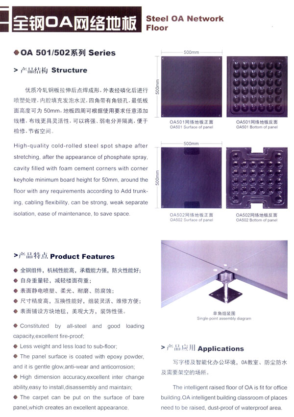 常州市蘇杰機(jī)房地板有限公司是高架地板專業(yè)制造商,專業(yè)從事防靜電地板、OA網(wǎng)絡(luò)地板等各種系列高架地板的研發(fā)、制造和銷售,并提供各種機(jī)房地面和智能化辦公區(qū)地面的整體解決方案。 公司廠區(qū)面積30000平方米,擁有全鋼地板生產(chǎn)線兩條,木基、硫酸鈣基地板生產(chǎn)線各一條,年綜合產(chǎn)能100萬平方米。生產(chǎn)蘇杰牌防靜電地板系列和蘇杰牌網(wǎng)絡(luò)地板系列,主要產(chǎn)品有全鋼防靜電架空地板、全鋼OA網(wǎng)絡(luò)地板、瓷磚貼面防靜電地板、硫酸鈣防靜電地板、木基防靜電地板、鋁合金防靜電地板、防靜電通風(fēng)地板等。 蘇杰人秉承“科技先導(dǎo)、市場為本、持續(xù)發(fā)展”的企業(yè)發(fā)展觀,堅(jiān)持“以先進(jìn)技術(shù)裝備為基礎(chǔ),以現(xiàn)代化管理為依托,以專業(yè)化服務(wù)為保障”的宗旨,使公司不斷發(fā)展壯大成為現(xiàn)代化的企業(yè)。 蘇杰人堅(jiān)持“嚴(yán)謹(jǐn)思考、嚴(yán)密操作、嚴(yán)格檢查、嚴(yán)肅驗(yàn)證”的品質(zhì)理念和“以客戶為中心”的服務(wù)理念,始終致力于產(chǎn)品的技術(shù)創(chuàng)新和質(zhì)量創(chuàng)優(yōu),為用戶提供優(yōu)質(zhì)的產(chǎn)品、合理的價(jià)格和貼心的服務(wù)。 常州市蘇杰機(jī)房地板有限公司將不斷開發(fā)和制造一流的產(chǎn)品,吸引和培養(yǎng)一流的人才,提供和完善一流的服務(wù),樹立和保持一流的形象,與時(shí)俱進(jìn),共謀發(fā)展。