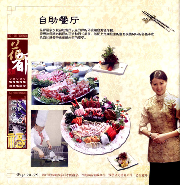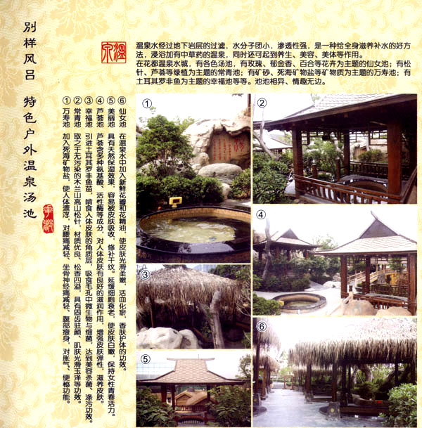 淹城花都溫泉水城孕育天地之精華,悅身、悅?cè)、悅心、悅神。置身其中泉水潺潺,霧氣繚繞、花瓣飄香,恍若仙境。“掬水月在手,弄花香滿衣”,花都溫泉的浪漫與溫潤在這里完美展現(xiàn)。 花都溫泉水城包括洗浴區(qū)、戲水世界、露天溫泉、自助餐廳、生態(tài)房、別墅區(qū)、紅文化房、VIP區(qū)等多種功能區(qū)域,是集溫泉養(yǎng)生、休閑住宿、演藝會務(wù)為—體的休閑度假勝地,給賓客帶來江南小鎮(zhèn)的浪漫水城之旅。 古木新枝畔賓客對酒當(dāng)歌,溪泉石椅旁把茶品啜。 淹城-三勤生態(tài)酒店,這里是一處綠色生態(tài)的美食家園。此地鬼斧神工.奇水異石,和風(fēng)細雨林中穿過,引百鳥朝來暮歌;這里集生態(tài)餐飲、演藝、中小型會務(wù)為一體,將現(xiàn)代裝飾風(fēng)格和古雅拙樸的自然裝修完美整合;這里聚集大江南北名廚,推出精致綠色美昧佳肴。來到這里,賓客可享田園至美之景,品舌尖至鮮之味,實乃人生一大樂事。