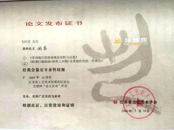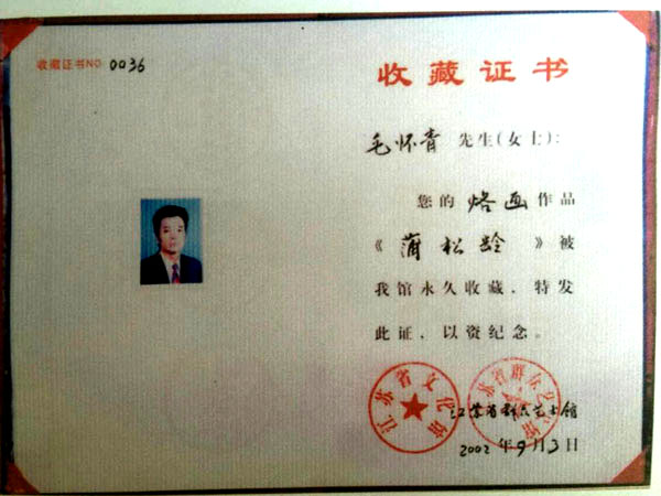 毛懷青,江蘇常州市武進人。 中國工藝美術學會會員,常州市中國烙畫研究會副會長,常州市文博鑒賞協(xié)會理事,非物質文化遺產(chǎn)烙畫傳承人。高級工藝美術師。 年輕時學習國畫、油畫中年蔓現(xiàn)掌州咯畫源遠流長、歷史悠久,有著其它美術門類不具備的藝術風格與特色。可謂是工藝美術中的一朵十分亮麗的藝術奇葩,是我民族先人給我們留下的一份不可多得十分珍貴的一份文化遺產(chǎn)。為弘揚與發(fā)展這份優(yōu)秀文化遺產(chǎn),我從此下定決心研究烙畫,愿付出一份力量為振興烙畫事業(yè)做出貢獻。至今已潛心研究幾十年,取得了可喜的成績,被業(yè)界公認,社會關注與認可。有“江南烙畫第一筆”之美譽。 近年來,創(chuàng)作的烙畫作品分別獲得過全國、省市級的金、銀、銅獎多次。中央電視臺曾兩次播放過本人的烙畫作品,江蘇電視臺、常州電視臺也曾多次播放過本人的作品與烙畫藝術生涯,揚子晚報、常州日報、常州晚報也曾多次報導過本人的烙畫作品,出版物有三種版本都能查閱到介紹本的烙畫從藝生涯與藝術業(yè)績。