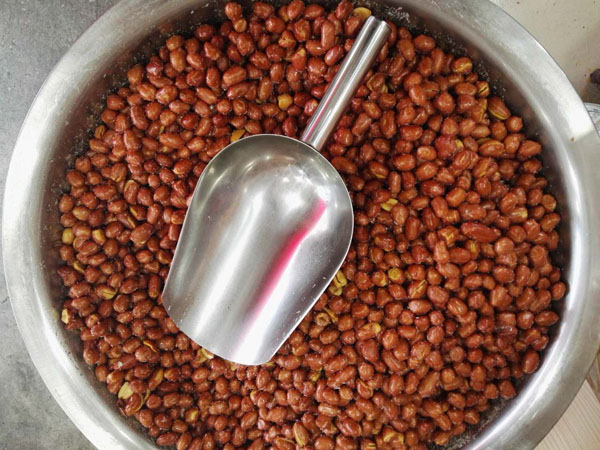 湖塘花東街上的“石頭炒貨店”是20多年的老字號了。上個世紀(jì)90年代,二十郎當(dāng)歲的“石頭”一一石愛軍從徐州來到武進(jìn),就在這條街上擺了個炒貨攤!皫灼椒矫椎男〉?cái),邊上架個大鐵鍋,炒出的瓜子、花生、蠶豆,鋪在竹篾上篩過、冷卻后就可以賣了!笔瘣圮娀貞洠址秽徖锩爸盏膰(yán)寒,擠在地?cái)偳皣L著剛出鍋的瓜子的場景,還歷歷在目。20多年過去了,鄰居們都成了最熟悉的親人,從年輕姑娘到抱著孫子的老人,大家還是最愛吃石頭炒的瓜子。而炒貨店的店面也擴(kuò)大了,并且在湖塘另開了多家分店。 生意最好的還是花東街上的老店。不大的店面,被一袋袋瓜子、花生、蠶豆、核桃堆得滿滿的,空氣里也滿滿都是堅(jiān)果的香氣。超大瓜子唇齒留香,去皮瓜子鮮香入昧,南瓜子皮薄肉厚,還有開心果、手剝松子、小油果、核桃、碧根果、小黃豆,以及炒米糕、蛋卷、麻松條、紫薯干、地瓜干、山芋片、鍋巴、芝麻糖、山楂、麻花、葡萄干….這么多美昧都是老板親手制作。愛吃點(diǎn)什么,就用一 長柄勺鏟點(diǎn)兒什么,最質(zhì)樸簡單的包裝袋里,裝著的是屬于這條老街居民記憶里的味道,穿過幾十年的時光,仍然鮮活生動地銘刻在每一個人的里。 “少東家”石榮沖就是在這個老店、這條老街長大的。他說目前自己炒瓜子的技藝還沒到火候,還在跟著父親學(xué)習(xí)的階段。”挑選原料、炒制工序,每一步都有學(xué)問在里頭!蹦玫陜(nèi)的銷售冠軍“內(nèi)蒙大瓜子”來說,這種來自內(nèi)蒙、經(jīng)過充足日照的葵花子每顆長度近2厘米,個頭特別大,也十分飽滿。拈一顆大瓜子,就連嗑起來的聲音也分外清脆。外皮很容易與內(nèi)仁剝離,碩大的瓜子仁口感十分香脆,與別家作料用得很足、吃起來特別鮮咸的瓜子不同,這種大瓜子更注重烘托原昧,淡淡的咸昧在舌尖掠過,剩余的都是屬于瓜子的天然香甜。