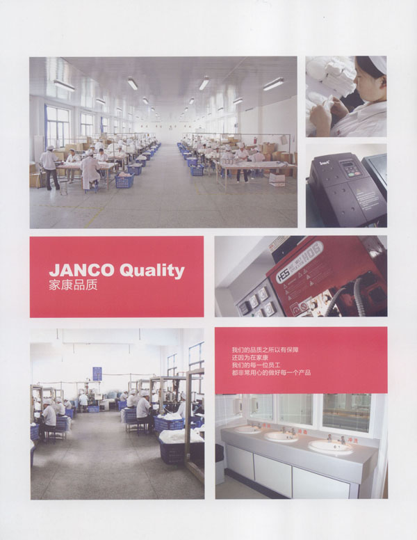 中國(JANCO)家康衛(wèi)生用品公司成立于2004年,我們專注于研發(fā)、設(shè)計(jì)、及制造健康的衛(wèi)生用品。我們的產(chǎn)品包括防溢乳墊、汗墊、寶寶背墊、圍兜、護(hù)理墊等。我們的生產(chǎn)廠房建設(shè)在中國江蘇省常州市,這是一個(gè)非常美麗的城市,并且我們的廠區(qū)鄰近沿江高速,交通非常便利。 我們擁有國際一流的生產(chǎn)設(shè)備、先進(jìn)的檢測(cè)儀器、無菌的生產(chǎn)車間。我們每一個(gè)產(chǎn)品都經(jīng)過家康人專心、專業(yè)的制造,我們注重每一個(gè)細(xì)節(jié),不斷的研發(fā)更舒適、更健康、更人性化的產(chǎn)品,旨在為您提供更滿意的服務(wù)。我們也可以根據(jù)您的需求研發(fā)、設(shè)計(jì)、生產(chǎn)不同的產(chǎn)品。我們的產(chǎn)品已遠(yuǎn)銷海外,并且得到非常好的評(píng)價(jià)。出口的國家有美國、加拿大、英國、意大利、俄羅斯、南非、泰國等。人性化的設(shè)計(jì)、優(yōu)秀的品質(zhì)、完善的售前、售后服務(wù)及合理的價(jià)格使我們的客戶與我們的合作感到非常的愉快。 我們已經(jīng)通過了ISO9000和FDA認(rèn)證,我們將感到非常榮幸能夠與您合作。 我們非常樂意與中國的經(jīng)銷商共同分享我們的產(chǎn)品,我們將非常期待您的信任和加盟。 我們將一如既往的為您提供:更舒適的、更健康的產(chǎn)品。