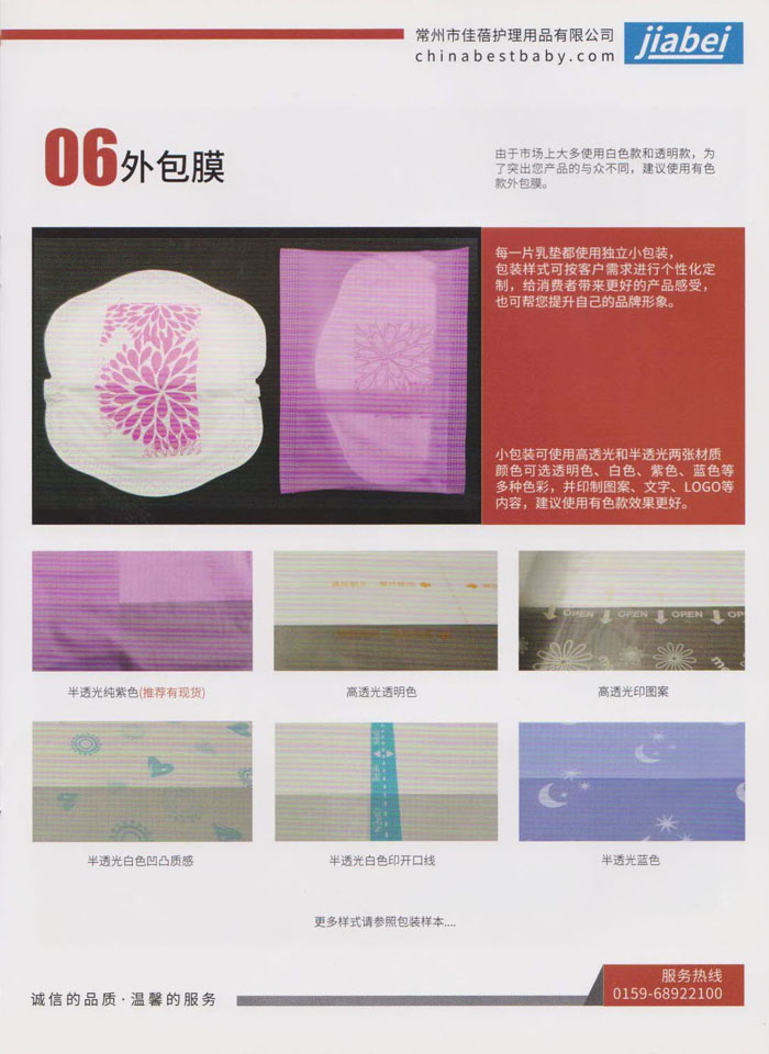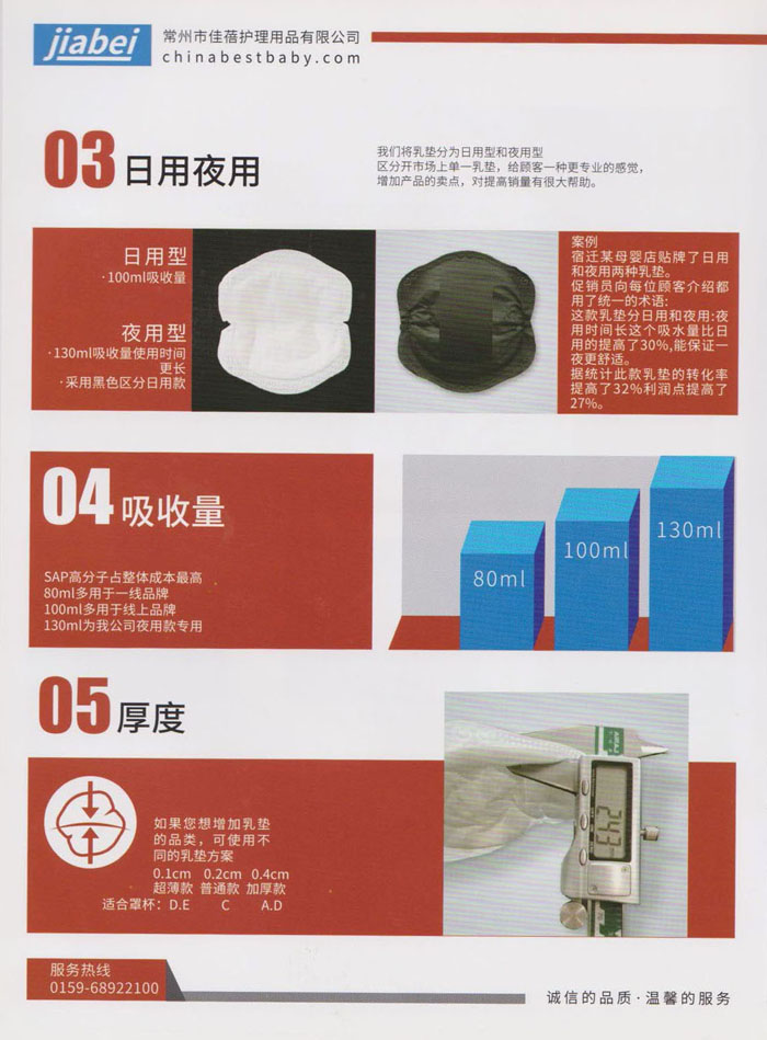 常州市佳蓓護(hù)理用品有限公司是一家專(zhuān)業(yè)從事開(kāi)發(fā)、生產(chǎn)、銷(xiāo)售并具備自營(yíng)出口的外向型企業(yè),主要生產(chǎn)“一次性防溢乳墊“,以質(zhì)量穩(wěn)定,柔軟親膚而深受客戶和消費(fèi)者青睞。本公司產(chǎn)品從生產(chǎn)到包裝成品嚴(yán)格執(zhí)行無(wú)菌生產(chǎn)標(biāo)準(zhǔn)化流程,并和設(shè)備生產(chǎn)廠家合作開(kāi)發(fā)了兩條從進(jìn)料、生產(chǎn)、檢測(cè)、滅菌、成品包裝的無(wú)菌生產(chǎn)線,從而實(shí)現(xiàn)了真正意義上的無(wú)菌生產(chǎn)標(biāo)準(zhǔn)化。 佳蓓秉承”用戶至上“的原則,期待與國(guó)內(nèi)外客戶真誠(chéng)合作,同時(shí)也誠(chéng)邀品牌公司貼牌合作,歡迎您的蒞臨和指導(dǎo),與我們攜手合作,共創(chuàng)未來(lái)。