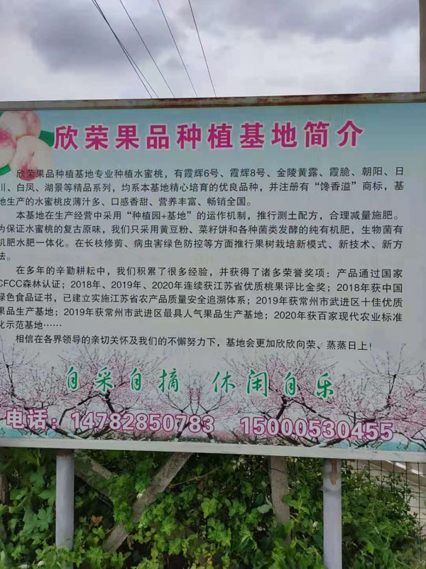 欣榮果品種植基地專業(yè)種植水蜜桃,有霞輝6號、霞輝8號、金陵黃露、霞脆、朝陽、日川、自鳳、湖景等精品系列,均系本基地精心培育的優(yōu)良品種,并注冊有“饞香溢”商標,基地也生產(chǎn)的水蜜桃皮薄汁多、口感香甜、營養(yǎng)豐富、暢銷全國。 本基地在生產(chǎn)經(jīng)營中采用“種植園+基地”的運作機制,推行測土配方,合理減量施肥。保證水蜜桃的復古原昧。我們只采用黃豆粉、菜籽餅和各種菌類發(fā)酵的純有機肥,生物菌有機肥水肥一體化。在長枝修剪、病蟲害綠色防控等方面推行果樹栽培新模式、新技術、新方去。 在多年的辛勤耕耘中,我們積累了很多經(jīng)驗,并獲得了諸多榮譽獎項:產(chǎn)品通過國家CFCC森林認證;2018年、2019年、2020年連續(xù)獲江蘇省優(yōu)質桃果評比金獎;2018年獲中國綠色食品證書,已建立實施江蘇省農(nóng)產(chǎn)品質量安全追溯體系;2019年獲常州市武進區(qū)十佳優(yōu)質果品生產(chǎn)基地;2019年獲常州市武進區(qū)最具人氣果品生產(chǎn)基地;2020年獲百家現(xiàn)代農(nóng)業(yè)標準化示范基地…… 相信在各界領導的親切關懷及我們的不懈努力下,基地會更加欣欣向榮、蒸蒸日上!