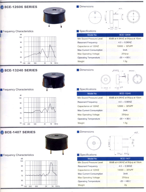 本公司生產(chǎn)的蜂鳴器結(jié)構(gòu)緊密,材質(zhì)輕,功耗低,質(zhì)量可靠,使用方便,價(jià)格合理,采用最新技術(shù)電子元件。廣泛應(yīng)用于打印機(jī)、電話、定時(shí)器、尋呼機(jī)、洗衣機(jī)、取款機(jī)、報(bào)警器、電腦終端機(jī)、復(fù)印機(jī)、電唱機(jī)、汽車及摩托車電子設(shè)備、空調(diào)設(shè)備、萬(wàn)用表、遙控裝置、各種安全裝置以及便攜或電池式迷你型裝置。