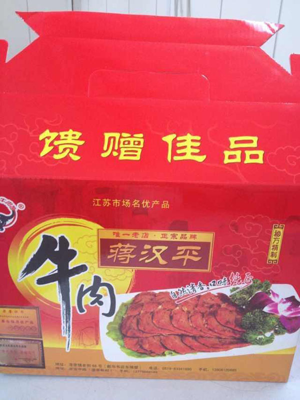 湟里漢平牛肉館創(chuàng)建于二十世紀(jì)初,當(dāng)時湟里鎮(zhèn)乃蘇、浙、皖三省交界的商貿(mào)重鎮(zhèn),而湟里“牛市”交易更是聞名遐邇,始祖利用當(dāng)?shù)貎?yōu)質(zhì)的水牛資源,配以特制秘方精制而成,其肉質(zhì)細膩,筋肉相同,鮮香美味,百吃不厭,當(dāng)時廣受各路商界贊譽。蔣氏牛肉聲名遠揚。經(jīng)過祖先秘方與現(xiàn)代工藝的不斷完善,使得現(xiàn)在的蔣漢平牛肉館在常武地區(qū)享有盛名,成為唯一的正宗湟里牛肉,各界星級大酒店已把蔣氏的“湟里牛肉”搬上菜譜,成為一道必吃的佳肴,同時也是人們饋贈親友的首選佳品。