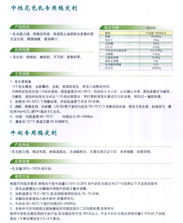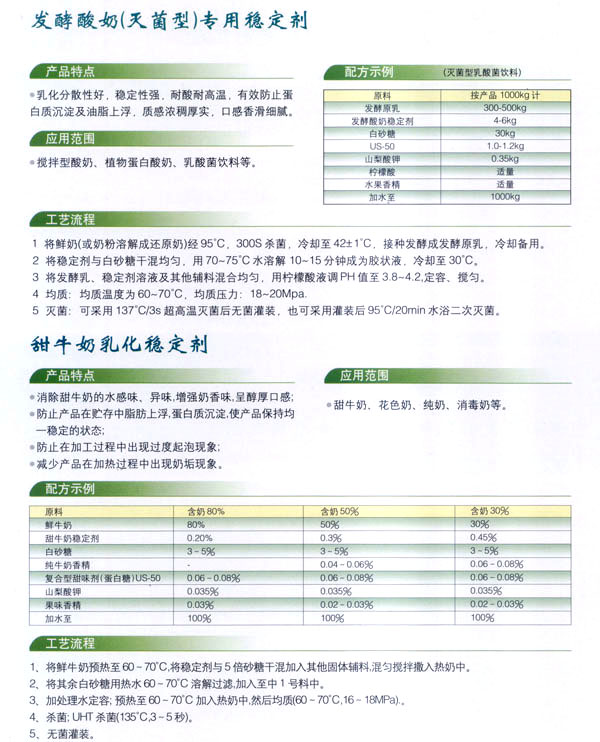 常州市中友食品有限公司;匚挥诔V菔袞|郊開發(fā)區(qū),廠房占地面積6000平方米,擁有全新的生產(chǎn)線,先進的生產(chǎn)流程和嚴格的質(zhì)量管理體系(工廠已通過IS09001:2000質(zhì)量管理體系的認證)。并有專業(yè)的技術(shù)開發(fā)和理化檢驗的設(shè)施、經(jīng)驗豐富的技術(shù)人員。公司以科技為依托,常年與高等院校合作,不斷地開發(fā)和研制適合市場需求的食品添加劑系列產(chǎn)品。公司每年面向全國招收優(yōu)秀的博士、碩士及優(yōu)秀的大學生。公司現(xiàn)有員工1 00多人,管理人員2 0名、高工5名、產(chǎn)品專業(yè)技術(shù)開發(fā)人員12名,還有選擇地引進和代理國內(nèi)外各種適用的食品添加劑。 依靠本公司雄厚的科技力量和先進的科技設(shè)備,生產(chǎn)基地已經(jīng)具備了與客戶共同開發(fā)國內(nèi)外先進食品添加劑的應用技術(shù)。博適中友公司多年來致力于食品添加劑的研究和開發(fā),突破常規(guī)理念,以市場、用戶為中心,研究開發(fā)各個品種、各個檔次的食品添加劑,品種齊全又多樣,既有出口型又有內(nèi)銷型。公司主要穩(wěn)定劑產(chǎn)品有:乳飲料乳化穩(wěn)定劑、乳酸飲料乳化穩(wěn)定劑、冰淇淋(雪糕)復合乳化穩(wěn)定劑、果汁飲料乳化穩(wěn)定劑等,產(chǎn)品暢銷國內(nèi)外,覆蓋了全國二十多個省市,并建立了穩(wěn)定的銷售網(wǎng)絡(luò)。 本公司對產(chǎn)品指定了嚴格的質(zhì)量標準,并報請常州市技術(shù)檢驗監(jiān)督局審核批準,其技術(shù)要求完全符合GB一2760(食品添加劑使用衛(wèi)生標準)和符合聯(lián)合國直接衛(wèi)生組織(WHO)、聯(lián)合國食品與農(nóng)業(yè)組織(FAO)以及美國食品和藥物管理局的有關(guān)規(guī)定。 長期以來,博適中友公司以市場定位為基本依據(jù),堅持發(fā)展并開辟多元化的國內(nèi)外市場:以專業(yè)化、長遠化、規(guī);癁榻(jīng)營思路:以開拓創(chuàng)新,務(wù)實誠信為經(jīng)營理念,不斷促進企業(yè)發(fā)展壯大。 公司自創(chuàng)建以來,始終不渝地堅持質(zhì)量第一、信譽至上,以精湛的工藝加工產(chǎn)品,不管是標準的或特制的都可享有本公司優(yōu)良的技術(shù)服務(wù)。無論您需要何種功能性添加劑,博適中友食品添加劑公司均能滿足您的要求。博適中友公司以價格合理、服務(wù)周到為經(jīng)營宗旨,努力引導食品添加劑應用發(fā)展的新潮流、新方向。在才能卓越的領(lǐng)導者的帶領(lǐng)下,全體員工以開拓、創(chuàng)新、求實、守信為企業(yè)精神,不斷地提高自身的素質(zhì)。 公司的宗旨是“開拓創(chuàng)新發(fā)展、精誠服務(wù)和諧”為目標,熱忱與各界有識之士攜手共進,共創(chuàng)輝煌!如今公司業(yè)務(wù)蒸蒸日上,專業(yè)技術(shù)研究越走越精,這都與廣大客戶大力支持分不開。在新世紀來臨之際,上海博適中友公司愿與您真誠合作,攜手并進,共鑄新的輝煌!