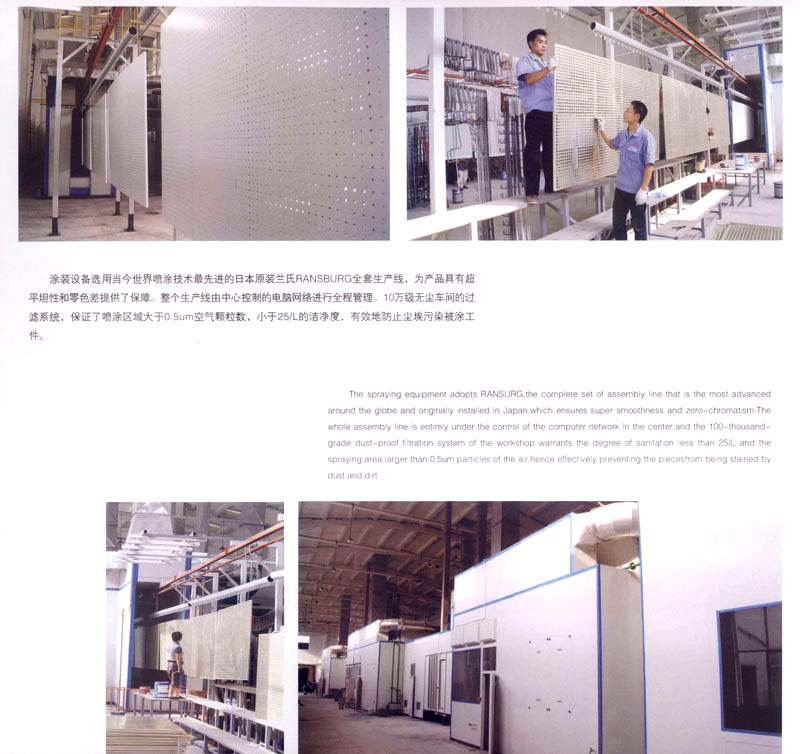公司在成立之初即以一批具備多年經(jīng)驗(yàn)的技術(shù)骨干為中心,以雄厚的設(shè)計(jì)班底,技術(shù)過硬的操作團(tuán)隊(duì),富有管理經(jīng)驗(yàn)的專業(yè)人才為客戶提供一流品質(zhì)的產(chǎn)品和完善的服務(wù),F(xiàn)已具備年產(chǎn)50萬平方米氟碳鋁單板、20萬平方米蜂窩板和30萬鋁制天花的生產(chǎn)能力。