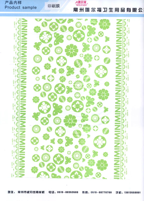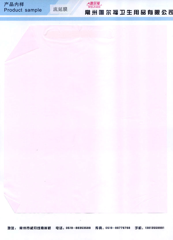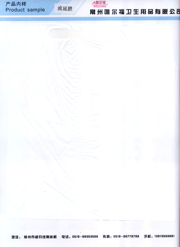 常州唯爾福衛(wèi)生用品有限公司是一家獨(dú)資企業(yè),地處滬寧高速、沿江高速,常州橫山出口交匯處,交通便利、環(huán)境清新。 常州唯爾福衛(wèi)生用品有限公司創(chuàng)建于1998年,公司占地2.5萬(wàn)平方米,員工165人。 公司現(xiàn)有各類(lèi)生產(chǎn)線(xiàn)20條。公司現(xiàn)已發(fā)展成為各項(xiàng)管理先進(jìn)、技術(shù)力量雄厚,全年流延膜產(chǎn)量9000噸,華東地區(qū)最具規(guī);牧餮幽どa(chǎn)基地。 公司專(zhuān)業(yè)生產(chǎn)9—80克流延膜,15—80克透氣膜,及各類(lèi)印刷膜。優(yōu)極柔版印刷,各種復(fù)合膜。廣泛適用于婦女衛(wèi)生用品、嬰兒紙尿褲、成人紙尿褲、成人床墊、寵物墊、醫(yī)用薄膜制品等領(lǐng)域。多年來(lái)公司致力于研究和開(kāi)發(fā)適應(yīng)市場(chǎng)需求的新產(chǎn)品來(lái)滿(mǎn)足廣大客戶(hù)的需求。