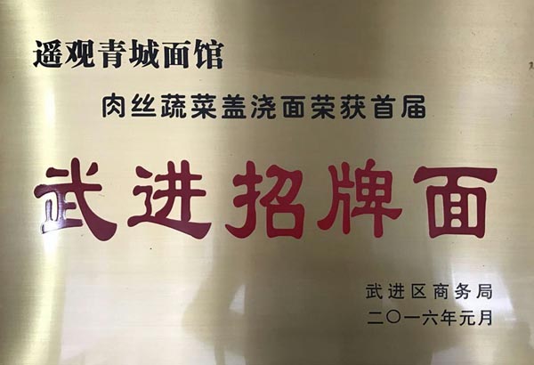 武進(jìn)區(qū)青城面館經(jīng)營(yíng)面積280平方米左右,主要特色是現(xiàn)炒肉絲,素菜蓋澆面,面館創(chuàng)始人今年63歲的王蘭珍,她對(duì)美食有著高于常人的悟性。她開(kāi)過(guò)饅頭店,開(kāi)過(guò)小飯館,承包過(guò)食堂,燒菜、取料樣樣在行,吃過(guò)的人常常贊不絕口。 20世紀(jì)初,在跟德興面館的老師傅學(xué)了做面手藝后,王蘭珍萌生了開(kāi)一家面館的想法,除了可以養(yǎng)家糊口,最重要的是想讓更多人嘗嘗自己的手藝。于是,她在自己的住處擺起了幾張桌椅,面館就算正式營(yíng)業(yè)了。因?yàn)榧易∏喑菢,王蘭珍干脆取名“青城面館”。 “從早上5點(diǎn)多開(kāi)始營(yíng)業(yè),到下午1點(diǎn)多打烊,一天至少要賣(mài)掉300多碗面,用掉近160斤面粉!睘楹吻喑敲骛^的面條如此受歡迎,兒媳婦陸偉紅說(shuō)秘訣在于湯頭和澆頭。湯頭分白湯和紅湯,白湯是由10斤豬骨頭熬制而成,湯色清澈而味道濃郁;紅湯以骨頭湯作底湯,加入茴香、甘草、草果等20多種中草藥,以及糖、醬油等調(diào)味品,鮮而不腥,散發(fā)出陣陣香味。 和一般面館事先燒制好澆頭,放在盆里供客人選擇不同,青城面館的澆頭都是一份份現(xiàn)炒的,特別講究食材的新鮮。就拿暢銷(xiāo)的肉絲蔬菜紅湯面來(lái)說(shuō),要先起猛火,把肉絲、木耳、蘑菇、青菜等食材放一起煸炒至香,然后澆在撈起的面條上。一碗面出來(lái),現(xiàn)炒的澆頭與面條融合,味道香郁至極。 遙觀人的早晨,醒得有些早。對(duì)很多遙觀人來(lái)說(shuō),美好的一天是從青城面館開(kāi)始的。那一碗碗現(xiàn)炒的蓋澆面,筋道爽滑、醬香味濃,溫存著他們的胃與記憶,帶來(lái)刻進(jìn)骨子里的家鄉(xiāng)味道。