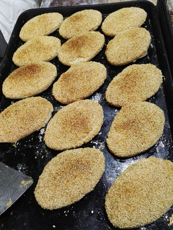 在韓記,大麻糕做好后,表面的芝麻也不是撒上去的,而是印上去的。芝麻經(jīng)烘烤之后顆粒飽滿,呈象牙色,使大麻糕的香、脆得到充分體現(xiàn)。