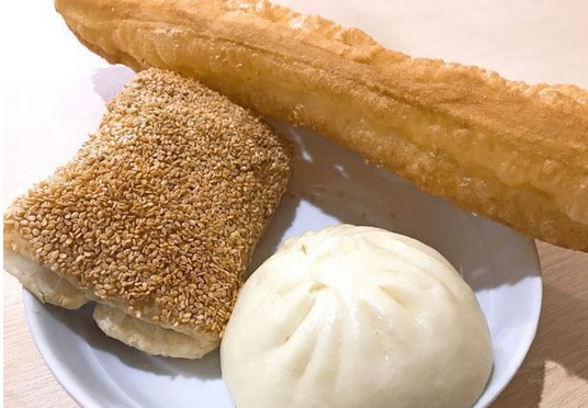 油條在鍋內(nèi)滋滋翻滾、各種口味的麻糕在柜臺里依次擺開、包子隱藏在散著熱氣的蒸鍋內(nèi)……沉寂一個晚上的胃,頓時有些不安于寂寞。