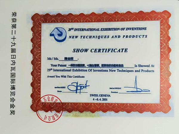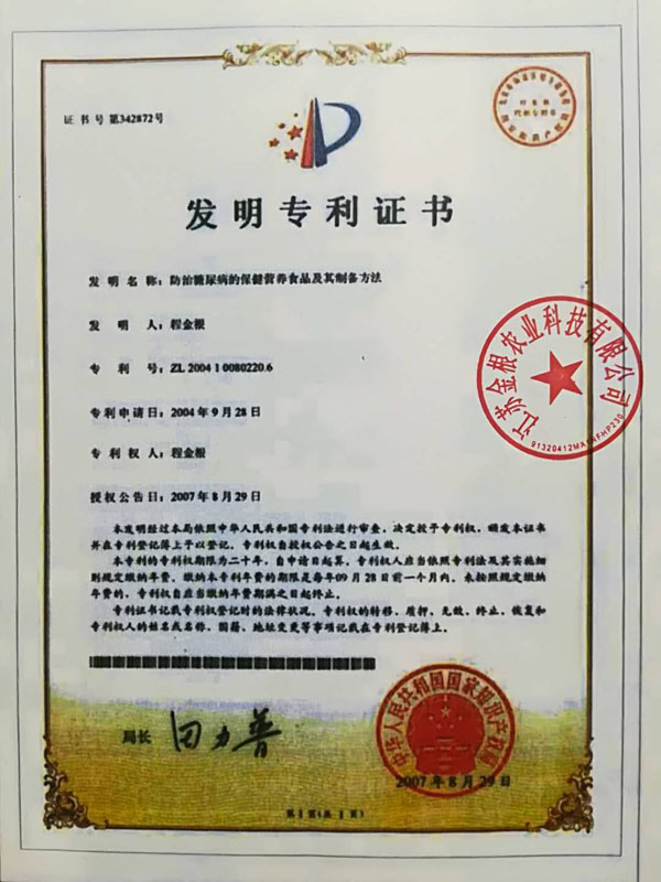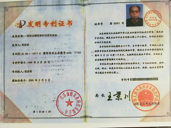 本產(chǎn)品原料是在高寒、高濕、旱地等種植,要求施農(nóng)家肥,采用生物治蟲,因此是無(wú)公害的優(yōu)良品種。目前公司有四個(gè)種植基地,分別在江西、江蘇、陜西等地。 一種防治糖尿病功能性食品專利號(hào):ZL99119217.6。 “程金根”系列產(chǎn)品先后獲得二項(xiàng)發(fā)明專利,并經(jīng)聯(lián)合國(guó)科技成果評(píng)估論證為A級(jí)產(chǎn)品,屬世界領(lǐng)先技術(shù)。在韓國(guó)、美國(guó)、香港、德國(guó)分別榮獲新技術(shù)、新產(chǎn)品博覽會(huì)金獎(jiǎng)。