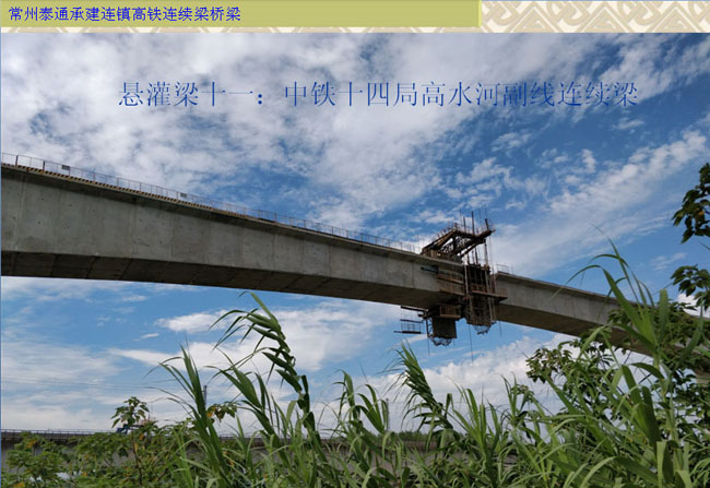 為了突出專業(yè)特色,保持競爭優(yōu)勢,公司形成了以承建旌工難度大、技7It含量高的大型及特大型高鐵橋梁建設(shè)為主的經(jīng)營格局,特別是在懸澆(掛籃施工)方面積累了相當豐富的施工與管理經(jīng)驗,先后承建了十幾座大跨徑的鐵路橋梁。