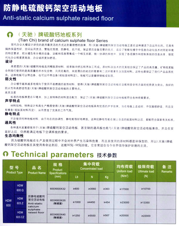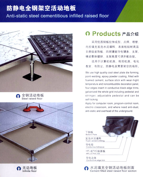 常州天馳活動地板有限公司始創(chuàng)于2010年,原身是常州市武進區(qū)橫林天馳機房地板廠,地處橫林工業(yè)園區(qū),交通便捷。 公司主要生產(chǎn)和銷售各種機房地板,自創(chuàng)立以來,以品質(zhì)第一,信譽第一,服務(wù)第一的理念堅持做全國最優(yōu)質(zhì)量。 防靜電高架活動地板是計算機行業(yè)發(fā)展起來的新型鋪地材料,隔離了潮氣,靜電灰塵。最重要的是解決了綜合布線問題,無需預埋管線,可隨時拆卸,搬移,保證了資訊設(shè)備完整的優(yōu)點,適應(yīng)了智能化樓宇中信息自動化技術(shù)對所處環(huán)境的特定要求,避免了廣大客戶的雙重投資,使現(xiàn)代化辦公程度更加高效,辦公場所更加舒適。 公司專業(yè)生產(chǎn)“天馳”系列活動地板,符合國家安全要求,種類完備多樣,其中防靜電瓷質(zhì)高架通路地板除具有普通瓷質(zhì)的裝飾和實用性外,其耐磨,防水,防火功能優(yōu)于其他同類產(chǎn)品,深受客戶歡迎。 公司大力發(fā)展國內(nèi)外銷售業(yè)務(wù),多次中標國內(nèi)重點裝飾工程,例:湖南電視臺,寧波縣變電站,鞍山市120急救指揮中心等。 公司將一如既往開發(fā)和制造一流的產(chǎn)品,愿與廣大有識之士合作發(fā)展,共創(chuàng)美好未來!