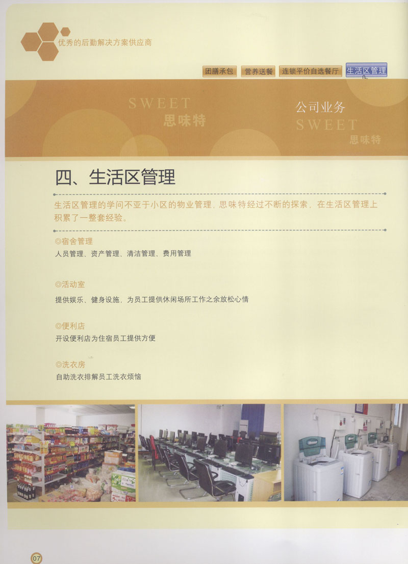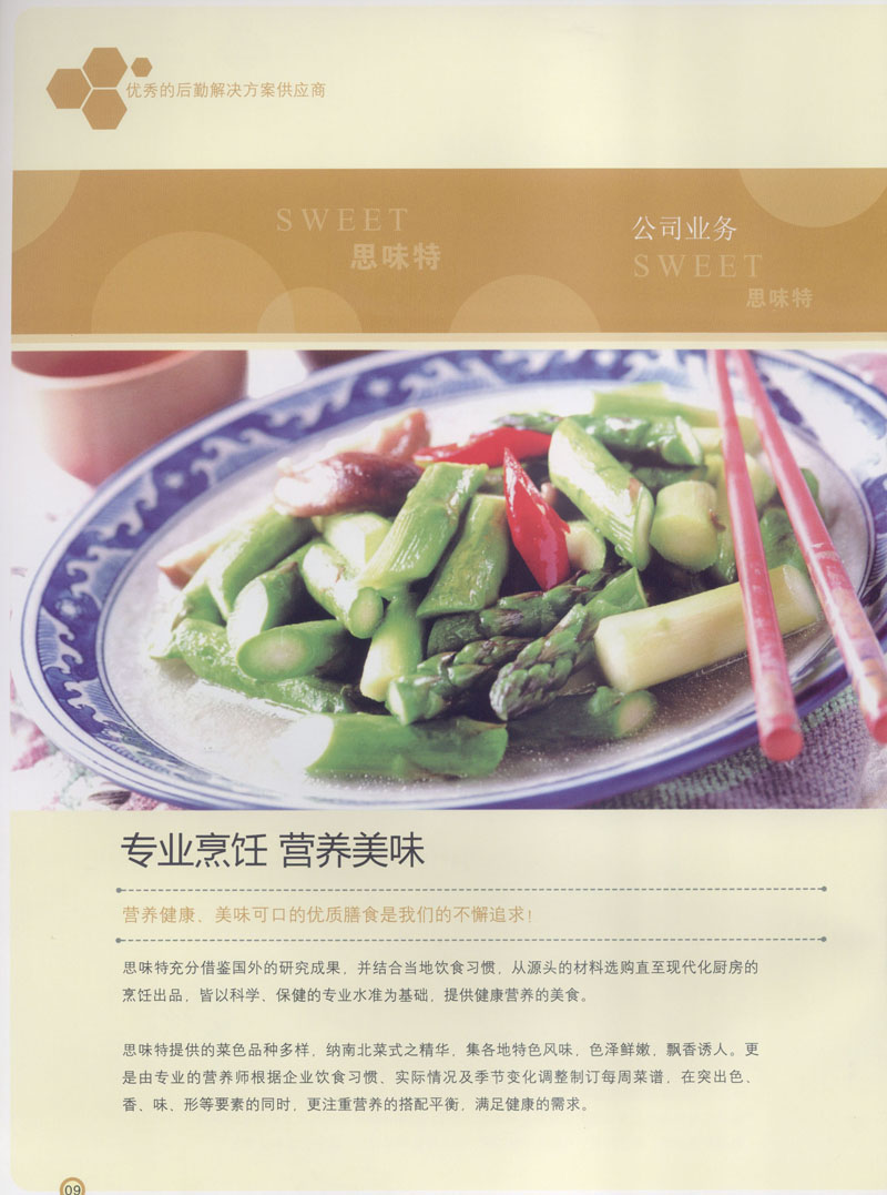 常州市思味特餐飲有限公司是一家專業(yè)從事企事業(yè)后勤服務(wù)的有限責(zé)任公司,公司從承包食堂起步,逐漸發(fā)展為經(jīng)營團膳承包、營養(yǎng)送餐、生活區(qū)管理、連鎖餐廳的綜合型企業(yè)。2008年公司斥資100萬元,在常州興建了可以同時提供3000餐膳食的中央廚房,重點打造“和美客”后勤服務(wù)品牌,全力為企事業(yè)單位解決后勤后顧之憂。
