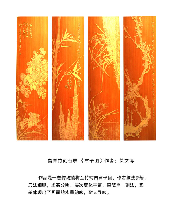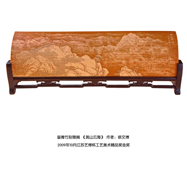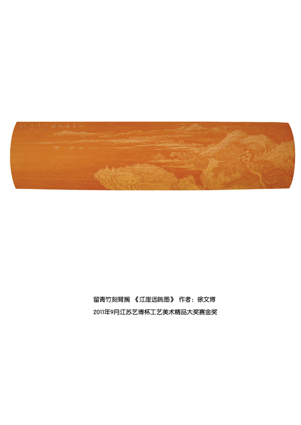 徐博(藝名文博),1973年生,江蘇武進人,江蘇省省名人,高級工藝美術(shù)師,常州市留青竹刻非遺傳承人,常州工藝美術(shù)家協(xié)會理事,被譽為當今中國最具創(chuàng)新意識的新銳竹刻家代表,多次獲得國家工藝美術(shù)大獎?釔哿羟嘀窨痰男煳牟┵p竹為樂,以竹詠志,借竹抒懷,悉心探索留青竹刻的藝術(shù)表現(xiàn)。在中國工藝美術(shù)大師蕭劍波的精心指導下,開創(chuàng)留青水墨山水之技法,更好的體現(xiàn)了竹刻淡雅清秀的藝術(shù)風格,并不斷汲取書畫、攝影、雕塑等藝術(shù)精華,不斷滋養(yǎng)藝術(shù)情趣,提升擴展胸襟人格的同時也逐步形成了其形神兼?zhèn)洌搶嵪嗌,氣韻生動的藝術(shù)特點,作品為眾多的國內(nèi)外收藏家珍藏。