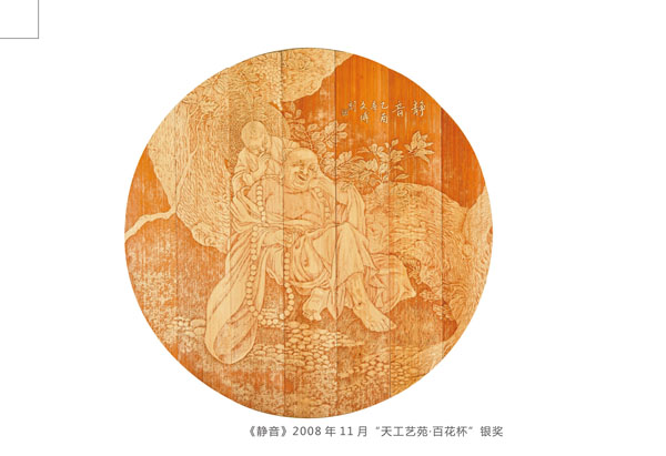 得獎情況 1、扇形擺件《花鳥》2004年9月太湖博覽會金獎 2、《蘭亭序》2008年11月江蘇藝博杯工藝美術(shù)精品獎銀獎 3、《雄風圖》2008年11月江蘇藝博杯工藝美術(shù)精品獎創(chuàng)意獎 4、《靜音》2008年11月“天工藝苑•百花杯”中國工藝美術(shù)精品獎銀獎 5、《人物》2008年12月中國收藏藝術(shù)精品博覽會金獎 6、《花鳥》200 8年12月中國收藏藝術(shù)精品博覽會銀獎 7、《青竹鳥語》2008年12月中國收藏藝術(shù)品博覽會“入圍收藏品” 8、《吉祥富貴》2009年3月“金鳳凰”創(chuàng)新產(chǎn)品設計大獎賽金獎 9、《黃山云!2009年10月江蘇藝博杯工藝美術(shù)精品獎金獎 10、《花鳥》2009年10月第二屆江蘇旅游商品博覽會最佳產(chǎn)品獎 11、《秋菊圖》2009年11月“天工藝苑•百花杯”中國工藝美術(shù)精品獎銀獎 12、《秋鷹圖》2010年3月“金鳳凰”創(chuàng)新產(chǎn)品設計大獎賽優(yōu)秀獎 13、《花鳥四屏》2010年3月“金鳳凰”創(chuàng)新產(chǎn)品設計大獎賽銅獎 14、《荷塘清暑》2010年5月深圳國際文化產(chǎn)業(yè)博覽交易會銅獎 15、《溪山煙云圖》2010年9月江蘇藝博杯工藝美術(shù)精品大獎賽金獎 16、《高士臨風圖》2010年10月“天工藝苑•百花杯”中國工藝美術(shù)精品獎銀獎 17、《溪山煙云圖》2010年11月第二屆東方工藝美術(shù)之都博覽會“迎春花獎” 18、《深山尋隱圖》2011年3月“金鳳凰”產(chǎn)品設計大獎賽銅獎 19、《欣欣向榮》2011年5月深圳國際文化產(chǎn)業(yè)博覽交易會金獎 20、《江崖遠眺圖》2011年9月江蘇藝博杯工藝美術(shù)精品大獎賽金獎 21、《富春山居圖》2011年10月“天工藝苑•百花杯”中國工藝美術(shù)精品獎金獎 22、《深山訪友》2011年11月中國無錫國際文化藝術(shù)博覽會銀獎 23、《幽谷清音》2012年3月“金鳳凰”創(chuàng)新產(chǎn)品設計大獎賽銅獎 24、《群芳競艷》2012年10月“儒仕儒家、百花杯”中國工藝美術(shù)精品博覽會金獎 25、《山村渡口圖》2012年12江蘇藝博杯工藝美術(shù)精品大獎賽金獎。 26、《晨妝》2013年4月“金鳳凰”創(chuàng)新產(chǎn)品設計大獎賽金獎。 27、《和風圖》2013年6月中國(青島)工藝美術(shù)博覽會創(chuàng)新產(chǎn)品設計大賽金獎。 28、《松壑聽泉》2013年9月江蘇藝博杯工藝美術(shù)精品大獎賽銀獎。 29、《君子圖》2013年11月“國信•百花杯”中國工藝美術(shù)精品獎銀獎 30《碧水輕舟》2014年5月深圳國際文化產(chǎn)業(yè)博覽交易會銀獎。 31、《千巖萬壑圖》2014年10月“中國原創(chuàng)•百花杯”中國工藝美術(shù)精品獎金獎 32、《溪山訪友圖》2014年10月江蘇藝博杯工藝美術(shù)精品大獎賽銀獎 33、《深山云壑》2014年12月深圳冬季國際文化產(chǎn)業(yè)博覽交易會金獎 34、《鷹》2015年深圳文化產(chǎn)業(yè)博覽交易會獲“中國工藝美術(shù)文化創(chuàng)意獎”金獎