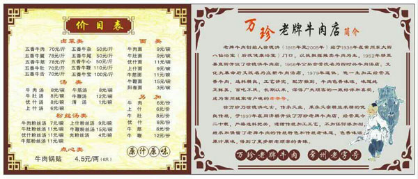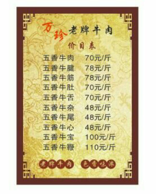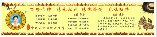 老牌牛肉創(chuàng)始人徐德洪始于1935年在常州東大街八仙浴室門口,以挑擔擺攤賣牛肉為生,1952年移至縣直街開設(shè)了徐德洪牛肉店。1958年公私合營改名為四時興牛肉店。文化大革命后又改名為立新牛肉店,1979年退休。他一生加工經(jīng)常五香牛肉,選料精良,工藝講究,配方獨到,牛肉色香味濃,味道純正鮮美,百吃不厭。長期以來,深得廣大顧客的一致好評和喜愛,成為常州城家喻戶曉的老字號。 徐萬珍乃徐德洪之女,傳承父業(yè),秉承父親精益求精的優(yōu)良傳統(tǒng),于1997年在同濟橋開設(shè)了萬珍老牌牛肉店,經(jīng)營至今二十載,嚴格選料把關(guān),遵循傳統(tǒng)加工工藝,不加工任何添加劑,繼承和保留了老牌牛肉的傳統(tǒng)特色和傳統(tǒng)老味道,色香味濃,原汁原味,得到了更多新老顧客的青睞。