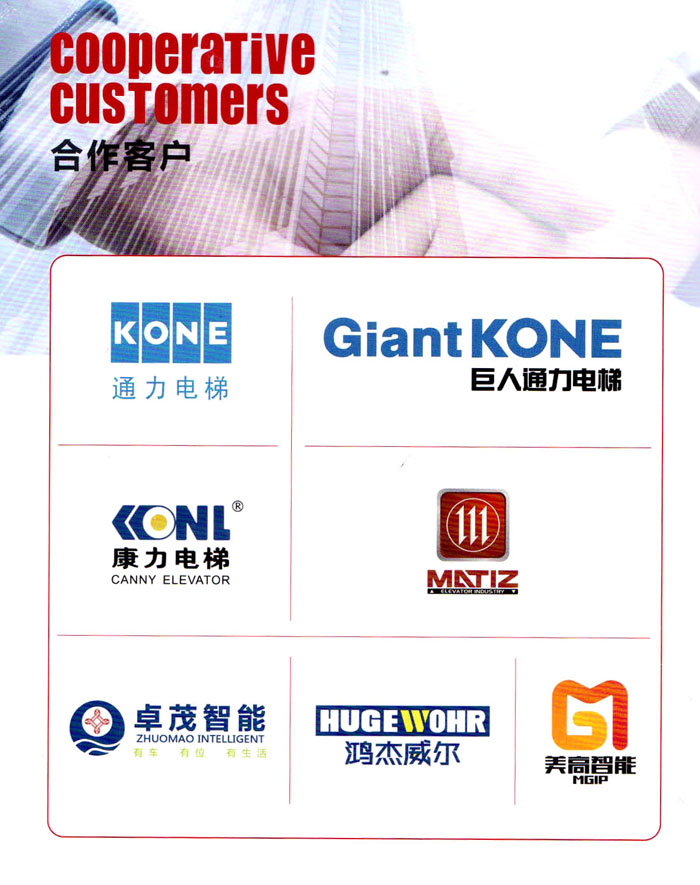 公司服務(wù)對象覆蓋全國各區(qū)域政府機構(gòu)、機關(guān)企事業(yè)單位、電子工業(yè)產(chǎn)業(yè)園、商業(yè)綜合體、商場超市、賓館、醫(yī)院、學(xué)校、住宅小區(qū)、客運中心以及工業(yè)廠房等1000多家單位,且具有持續(xù)影 響力,并在電梯行業(yè)樹立了一定的市場品牌地位。