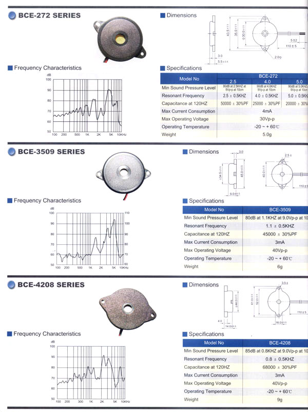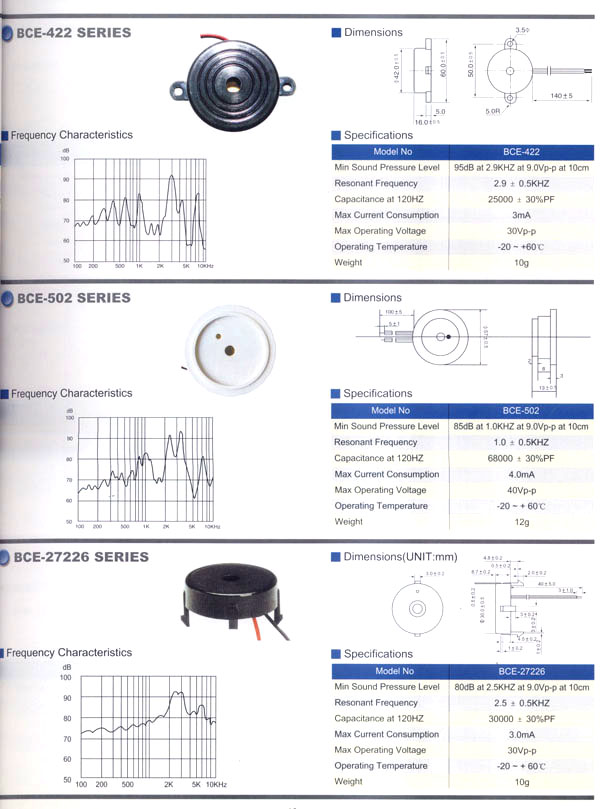 本公司生產(chǎn)的蜂鳴器結(jié)構(gòu)緊密,材質(zhì)輕,功耗低,質(zhì)量可靠,使用方便,價格合理,采用最新技術(shù)電子元件。廣泛應(yīng)用于打印機(jī)、電話、定時器、尋呼機(jī)、洗衣機(jī)、取款機(jī)、報警器、電腦終端機(jī)、復(fù)印機(jī)、電唱機(jī)、汽車及摩托車電子設(shè)備、空調(diào)設(shè)備、萬用表、遙控裝置、各種安全裝置以及便攜或電池式迷你型裝置。