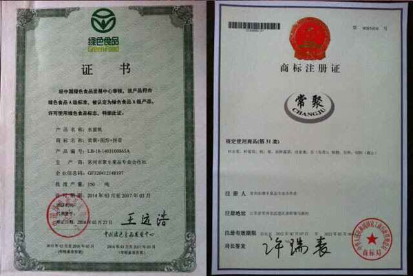 合作社生產(chǎn)的水蜜桃、葡萄在2013年通過國家綠色食品認證, 2013年合作社生產(chǎn)的“常聚”牌湖景水蜜桃在江蘇省第六屆“神農(nóng)杯”優(yōu)質(zhì)水果評比中獲得了銀獎。2012年合作社被常州市工商局和常州市經(jīng)紀人協(xié)會評為“常州市優(yōu)秀經(jīng)紀人”。合作社與農(nóng)業(yè)部南京農(nóng)業(yè)機械研究所、江蘇省農(nóng)科院、93學社等多家科研學術(shù)單位建立有緊密技術(shù)協(xié)作關(guān)系。合作社創(chuàng)新理念強,果品生產(chǎn)起點高,帶動范圍廣,運作規(guī)范,經(jīng)濟實力較強,擁有豐富的新品種引進、開發(fā)實踐經(jīng)驗。