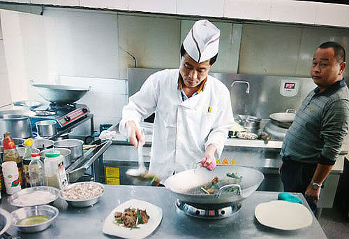 張萬成羊莊一家綜合性的公司,下設(shè)酒店,羊產(chǎn)品加工廠,屠宰廠,山羊養(yǎng)殖場(chǎng)。 酒店位于常州西夏墅浦河村,酒店羊宴規(guī)模占地30畝,酒店主要經(jīng)營(yíng)特色全羊宴。 一個(gè)祖?zhèn)鞯臍⒀虼髴,傳到張萬成,已是第六代了。張家的羊肉,素來以肉質(zhì)鮮美著稱,張萬成羊莊的主人張建龍是第六代傳人,張家的羊肉素來以肉質(zhì)鮮美著稱,從常州新北區(qū)沿黃河西路往機(jī)場(chǎng)方向直行至羅溪右轉(zhuǎn),穿過滬寧高速高架橋后不遠(yuǎn)處左拐沿翠屏湖路直走便能看到張萬成羊莊,酒店上下共有三層,2000多平方米經(jīng)營(yíng)面積,能同時(shí)接待近30桌客人的規(guī)模。有自己的羊圈和屠宰場(chǎng),每天殺20多只,菜式近100道。光是原料,就從原來羊身上的幾個(gè)主要部位,增加到除了羊牙齒以外的一只整羊全部可以入菜。烹制方式,更是在本土單一的燒、炒、煮基礎(chǔ)上,借鑒了東北、廣東、四川等地的烹羊特色,增加了蒸、涮、烤、煎、炸等多種方式。 注重原汁原味的冷菜 白切羊肉:精選羊頸部的活肉精制而成,肥瘦適中,絲毫沒有一般羊肉的膻味,沾少許張萬成羊莊秘制的醬料,口感非常好。 美味羊舌:張家的羊舌感覺是用特殊的醬料腌制過的,咸中略有甜味,口感鮮嫩卻肥而不膩,味道很香。 除了白切羊肉和羊舌以外還有許多冷菜品種,如羊肚、羊心、羊耳朵等。。 火候控制精準(zhǔn)的炒菜 炒羊肝:地道的農(nóng)家風(fēng)味,與大蒜葉同炒,蒜香濃郁,羊肝鮮嫩,這羊肝可是火候菜,羊肝鮮嫩與否不但取決于廚師對(duì)火候的掌握,還在于上桌放置時(shí)間的長(zhǎng)短,所以羊肝上桌后要盡快食用,看羊肝是否鮮嫩,只需用筷子挑起并輕輕抖動(dòng),有彈性者為佳。 美味羊?qū)殻阂跃曼S、鮑味菇爆炒的羊?qū),說是滋補(bǔ)壯陽(yáng)的一道金貴菜,配料講究的燒菜系列 宮廷燴羊肚:較為金貴的菜品,配菜貴于主料,是以名貴的素鮑和新鮮的筍絲與羊肚同煮,口感濃郁,營(yíng)養(yǎng)豐富。 海參白燒羊肉:將取自7個(gè)月大羔羊身上的帶皮腿肉與海參一同煨煮,菜肴美容滋補(bǔ),兩種鮮味互相補(bǔ)益達(dá)到完美交融狀態(tài),口感甚佳。 魚羊鮮:新鮮的青魚配上羊肉,既有本地羊肉的肥嫩,又有魚肉的鮮香,鮮!鮮!古代人造字就是有道理!”店里可以根據(jù)客人的需要配以魚回魚、鯰魚、鱖魚等。 特色的羊宴點(diǎn)心 羊肉餛飩:羊莊老板自創(chuàng)的羊宴點(diǎn)心,看似普通的油燜跑蛋卻另有乾坤,將蛋掀開便能看見藏于其中的羊肉菜餡餛飩,菜和肉都是自家新鮮的原料,很好吃。 手工搟面:不知道是因?yàn)槊媸钦嬲檬止{制還是因?yàn)榧尤肓缩r味十足的羊湯,總之味道非常好,面勁道,湯也鮮美! 張萬成羊莊的羊湯也是遠(yuǎn)近聞名,因?yàn)槭亲鎮(zhèn)鞯氖炙,做出來的羊湯不腥不膻,香醇不膩,味道十分鮮美,加入粉絲或者面條更是難得的美味。