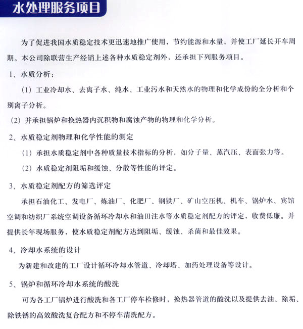 南京化工學(xué)院常州市武進水質(zhì)穩(wěn)定劑廠是集科研、生產(chǎn)、經(jīng)貿(mào)、服務(wù)、教育于一體的聯(lián)合實體,創(chuàng)辦于1986年。 企業(yè)位于長江金三角,緊靠滬寧鐵路和京杭大運河畔,處于滬寧高速公路之間道口橫山橋鎮(zhèn),距民航常州機場僅半小時路程,交通便捷。企業(yè)占地面積15.7萬平方米,擁有固定資產(chǎn)5000余萬元,員工400余名,其中專業(yè)技術(shù)人員占員工總數(shù)的28%。專業(yè)生產(chǎn)“頌歌”牌系列水質(zhì)穩(wěn)定劑,綜合年產(chǎn)能力3萬噸。 企業(yè)從1995年起先、后被列為國家中型二檔企業(yè),江蘇省明星企業(yè),江蘇省高新技術(shù)企業(yè),江蘇省環(huán)保產(chǎn)業(yè)百強企業(yè),化工部化工建設(shè)工程標(biāo)準(zhǔn)產(chǎn)品定點生產(chǎn)企業(yè),國家“精細化工星火技術(shù)密集區(qū)”重點骨干企業(yè),國家“貿(mào)工農(nóng)”出口商品生產(chǎn)基地。2003年起被評為國家環(huán)保產(chǎn)業(yè)骨干企業(yè)。2004年起“頌歌”商標(biāo)被評為江蘇省著名商標(biāo),“頌歌”牌水質(zhì)穩(wěn)定劑被評為江蘇省名牌產(chǎn)品。 企業(yè)運用嚴密的科學(xué)管理,配有先進的工藝技術(shù)和精良的生產(chǎn)裝備,保持高標(biāo)準(zhǔn)的產(chǎn)品質(zhì)量。所生產(chǎn)的水質(zhì)穩(wěn)定劑達到或超過國際先進水平,擁有PBTCA等多個江蘇省高新技術(shù)產(chǎn)品,DPSC緩蝕阻垢劑被列為國家星火計劃項目,工業(yè)循環(huán)水用新型緩蝕阻垢殺菌劑被國務(wù)院評為國家科技進步二等獎。主要產(chǎn)品均通過部、省級科技成果鑒定,連續(xù)十多年被中國石化總公司評定為合格推薦產(chǎn)品。企業(yè)已通過IS09001、IS014001國際質(zhì)量、環(huán)境認證,為國內(nèi)外石化行業(yè)、冶金、鋼鐵、化肥、電力、紡織等領(lǐng)域的工業(yè)循環(huán)冷卻水的水質(zhì)處理提供了必不可少的配套產(chǎn)品。 企業(yè)對外開放,實行全方位合作。自九六年企業(yè)獲得自營進出口經(jīng)營權(quán),水質(zhì)穩(wěn)定劑產(chǎn)品已銷往美國、英國、澳大利亞、日本和東南亞國家及香港、臺灣等地區(qū),并與之建立了穩(wěn)定的經(jīng)貿(mào)合作關(guān)系。