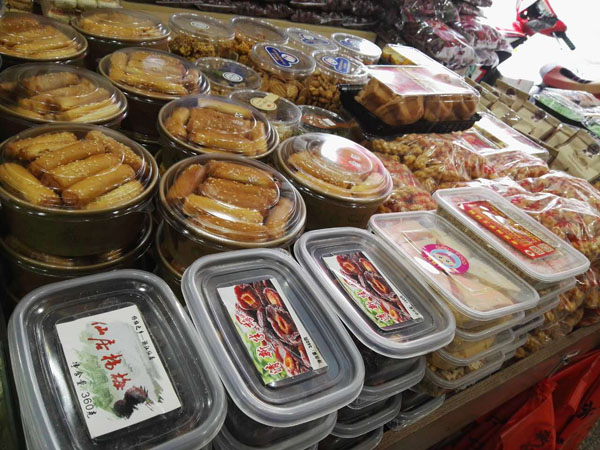 湖塘花東街上的“石頭炒貨店”是20多年的老字號了。上個(gè)世紀(jì)90年代,二十郎當(dāng)歲的“石頭”一一石愛軍從徐州來到武進(jìn),就在這條街上擺了個(gè)炒貨攤!皫灼椒矫椎男〉?cái),邊上架個(gè)大鐵鍋,炒出的瓜子、花生、蠶豆,鋪在竹篾上篩過、冷卻后就可以賣了!笔瘣圮娀貞洠址秽徖锩爸盏膰(yán)寒,擠在地?cái)偳皣L著剛出鍋的瓜子的場景,還歷歷在目。20多年過去了,鄰居們都成了最熟悉的親人,從年輕姑娘到抱著孫子的老人,大家還是最愛吃石頭炒的瓜子。而炒貨店的店面也擴(kuò)大了,并且在湖塘另開了多家分店。 生意最好的還是花東街上的老店。不大的店面,被一袋袋瓜子、花生、蠶豆、核桃堆得滿滿的,空氣里也滿滿都是堅(jiān)果的香氣。超大瓜子唇齒留香,去皮瓜子鮮香入昧,南瓜子皮薄肉厚,還有開心果、手剝松子、小油果、核桃、碧根果、小黃豆,以及炒米糕、蛋卷、麻松條、紫薯干、地瓜干、山芋片、鍋巴、芝麻糖、山楂、麻花、葡萄干….這么多美昧都是老板親手制作。愛吃點(diǎn)什么,就用一 長柄勺鏟點(diǎn)兒什么,最質(zhì)樸簡單的包裝袋里,裝著的是屬于這條老街居民記憶里的味道,穿過幾十年的時(shí)光,仍然鮮活生動地銘刻在每一個(gè)人的里。 “少東家”石榮沖就是在這個(gè)老店、這條老街長大的。他說目前自己炒瓜子的技藝還沒到火候,還在跟著父親學(xué)習(xí)的階段!碧暨x原料、炒制工序,每一步都有學(xué)問在里頭。”拿店內(nèi)的銷售冠軍“內(nèi)蒙大瓜子”來說,這種來自內(nèi)蒙、經(jīng)過充足日照的葵花子每顆長度近2厘米,個(gè)頭特別大,也十分飽滿。拈一顆大瓜子,就連嗑起來的聲音也分外清脆。外皮很容易與內(nèi)仁剝離,碩大的瓜子仁口感十分香脆,與別家作料用得很足、吃起來特別鮮咸的瓜子不同,這種大瓜子更注重烘托原昧,淡淡的咸昧在舌尖掠過,剩余的都是屬于瓜子的天然香甜。