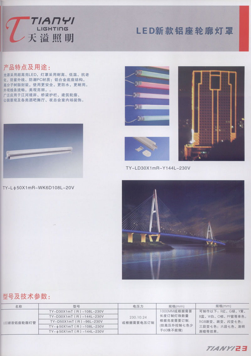 天溢照明是中國領(lǐng)先的專業(yè)從事LED廣告照明裝飾燈具設(shè)計、系統(tǒng)開發(fā)、燈具制造、工程服務一體的專業(yè)型公司,本公司產(chǎn)品已廣泛應用于全國大多數(shù)城市夜景亮化景觀照明、酒店休閑娛樂夜場夢幻燈光、戶內(nèi)外廣告宣傳、建筑及室內(nèi)照明以及家居裝飾等場合。