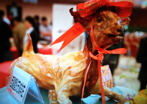 張萬成羊莊一家綜合性的公司,下設(shè)酒店,羊產(chǎn)品加工廠,屠宰廠,山羊養(yǎng)殖場。 酒店位于常州西夏墅浦河村,酒店羊宴規(guī)模占地30畝,酒店主要經(jīng)營特色全羊宴。 一個祖?zhèn)鞯臍⒀虼髴,傳到張萬成,已是第六代了。張家的羊肉,素來以肉質(zhì)鮮美著稱,張萬成羊莊的主人張建龍是第六代傳人,張家的羊肉素來以肉質(zhì)鮮美著稱,從常州新北區(qū)沿黃河西路往機(jī)場方向直行至羅溪右轉(zhuǎn),穿過滬寧高速高架橋后不遠(yuǎn)處左拐沿翠屏湖路直走便能看到張萬成羊莊,酒店上下共有三層,2000多平方米經(jīng)營面積,能同時接待近30桌客人的規(guī)模。有自己的羊圈和屠宰場,每天殺20多只,菜式近100道。光是原料,就從原來羊身上的幾個主要部位,增加到除了羊牙齒以外的一只整羊全部可以入菜。烹制方式,更是在本土單一的燒、炒、煮基礎(chǔ)上,借鑒了東北、廣東、四川等地的烹羊特色,增加了蒸、涮、烤、煎、炸等多種方式。 注重原汁原味的冷菜 白切羊肉:精選羊頸部的活肉精制而成,肥瘦適中,絲毫沒有一般羊肉的膻味,沾少許張萬成羊莊秘制的醬料,口感非常好。 美味羊舌:張家的羊舌感覺是用特殊的醬料腌制過的,咸中略有甜味,口感鮮嫩卻肥而不膩,味道很香。 除了白切羊肉和羊舌以外還有許多冷菜品種,如羊肚、羊心、羊耳朵等。。 火候控制精準(zhǔn)的炒菜 炒羊肝:地道的農(nóng)家風(fēng)味,與大蒜葉同炒,蒜香濃郁,羊肝鮮嫩,這羊肝可是火候菜,羊肝鮮嫩與否不但取決于廚師對火候的掌握,還在于上桌放置時間的長短,所以羊肝上桌后要盡快食用,看羊肝是否鮮嫩,只需用筷子挑起并輕輕抖動,有彈性者為佳。 美味羊?qū)殻阂跃曼S、鮑味菇爆炒的羊?qū)殻f是滋補壯陽的一道金貴菜,配料講究的燒菜系列 宮廷燴羊肚:較為金貴的菜品,配菜貴于主料,是以名貴的素鮑和新鮮的筍絲與羊肚同煮,口感濃郁,營養(yǎng)豐富。 海參白燒羊肉:將取自7個月大羔羊身上的帶皮腿肉與海參一同煨煮,菜肴美容滋補,兩種鮮味互相補益達(dá)到完美交融狀態(tài),口感甚佳。 魚羊鮮:新鮮的青魚配上羊肉,既有本地羊肉的肥嫩,又有魚肉的鮮香,鮮!鮮!古代人造字就是有道理!”店里可以根據(jù)客人的需要配以魚回魚、鯰魚、鱖魚等。 特色的羊宴點心 羊肉餛飩:羊莊老板自創(chuàng)的羊宴點心,看似普通的油燜跑蛋卻另有乾坤,將蛋掀開便能看見藏于其中的羊肉菜餡餛飩,菜和肉都是自家新鮮的原料,很好吃。 手工搟面:不知道是因為面是真正用手工搟制還是因為加入了鮮味十足的羊湯,總之味道非常好,面勁道,湯也鮮美! 張萬成羊莊的羊湯也是遠(yuǎn)近聞名,因為是祖?zhèn)鞯氖炙嚕龀鰜淼难驕恍炔浑,香醇不膩,味道十分鮮美,加入粉絲或者面條更是難得的美味。