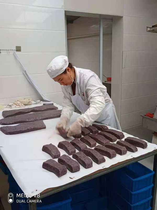 (重陽糕)重陽糕的由來,九九重陽,九是陽數(shù),也是陽數(shù)中最大的數(shù),九月初九,兩九相重,為之重陽,古人有重陽登高的習(xí)俗。高于糕同意,寓意人活九十九,生活步步高,秋景勝春光,夕陽無限好。夕陽紅成了老人對自己美好的祝愿和希望,所以從某種意義上來講它“祝壽糕”“長壽糕”重陽糕在常州地區(qū)是家喻戶曉的,下面小編帶你去一家至今保持傳統(tǒng)手工制作的鈺鋒糕點坊看一下吧。鈺鋒糕點坊位于常州市天寧區(qū)鄭陸鎮(zhèn)三皇廟范家莊,偏僻的小村莊,雖然有點偏僻,但是每到重陽節(jié)到來,每天還是有很多食客來訂購和購買店主孫煥做的多種口味的重陽糕。要想做出松軟香糯的重陽糕,原材料和糯米和梗米的配比也很重要,調(diào)整好比例開始淘米,浸泡,釓粉,放入糖攪拌,篩粉,糕底部放上荷葉,中間的餡心都是孫煥自己熬制,口感,香糯松軟,店主孫煥為了吸引更多現(xiàn)代年輕人,她在粉里加入南瓜,紫薯,紅糖,血糯等,色彩搭配很出跳,吸引來了很多食客,孫煥2019年開始自愿捐贈重陽糕給敬老院,她說這樣的公益活動自己很喜歡,雖然金額不大,缺表達了她的一份心意,并稱這樣的公益活動她每年都會做。