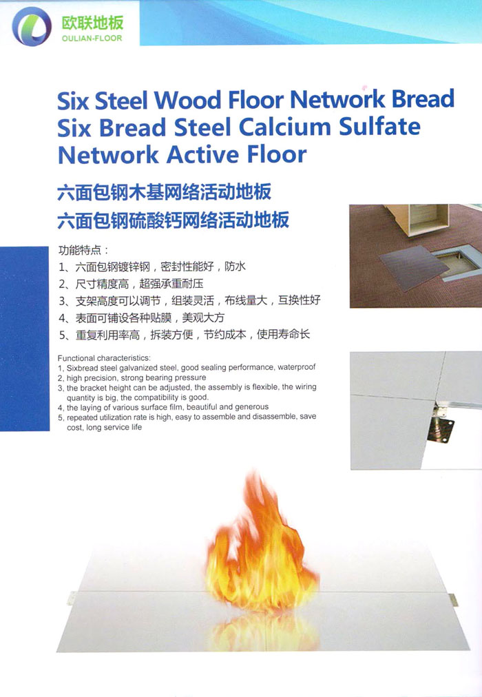 “歐聯(lián)”系列全鋼地板,符合國家安全要求,種類完備多樣,其中防靜電陶瓷地板、硫酸鈣地板等除具有普通瓷質(zhì)的裝飾和實用性外,其耐磨、防水、防火功能優(yōu)于其它同類產(chǎn)品,防靜電系列地板,能切合不同客戶的要求,其靈活的配置,深受客戶歡迎,不同材質(zhì)的地板結(jié)構(gòu)使設(shè)計師的設(shè)計空間比傳統(tǒng)的更加廣闊自由和善變。
